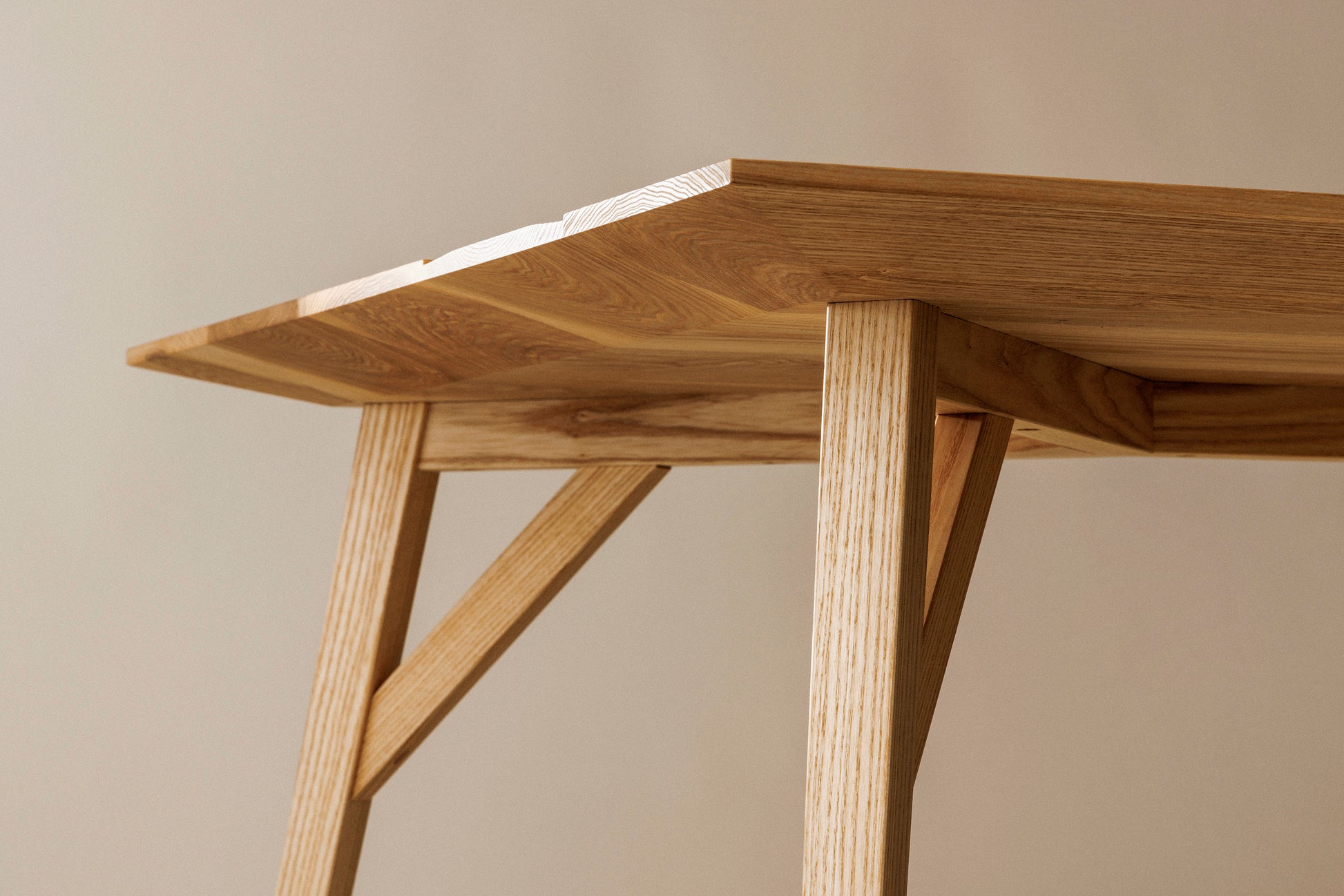 全体はシャープに見えるデザインながら、ディテールは木材の荒々しい部分を繊細に仕上げています。
